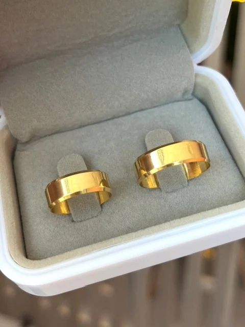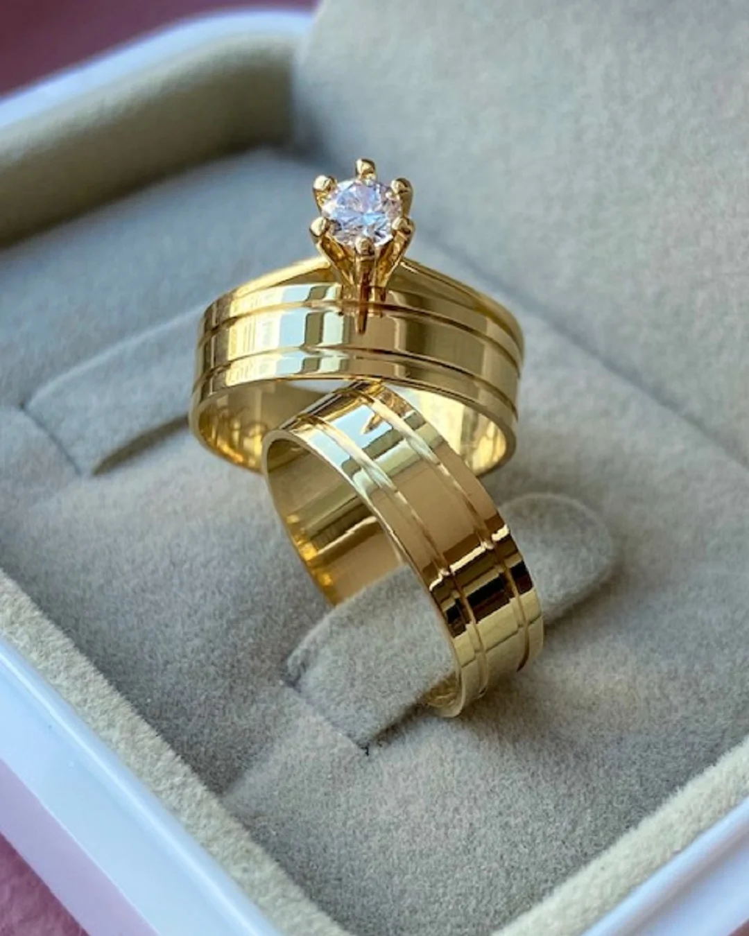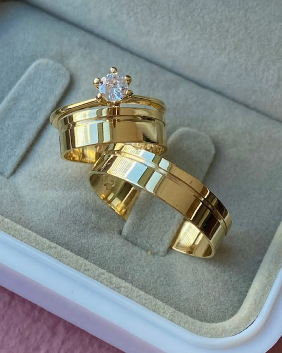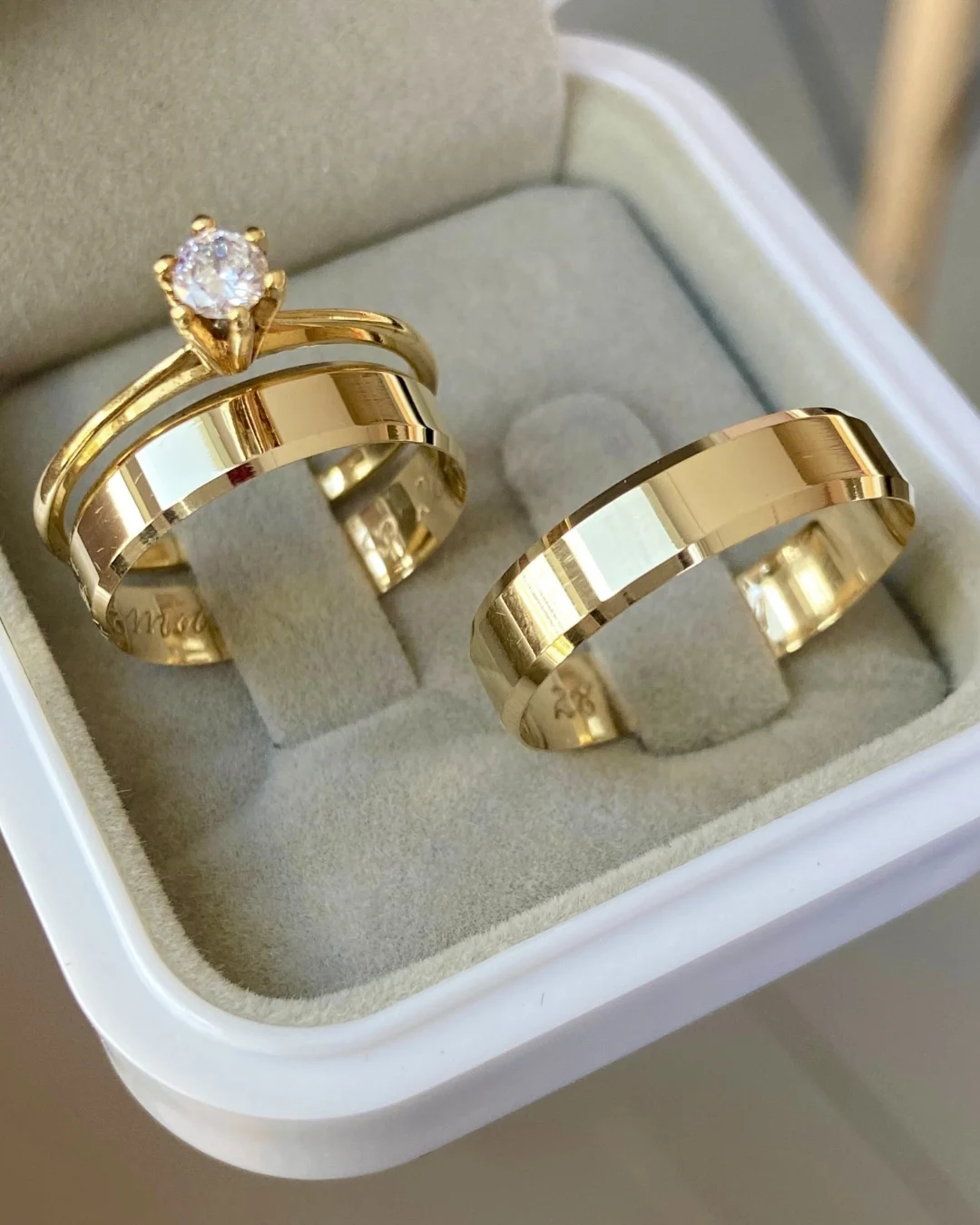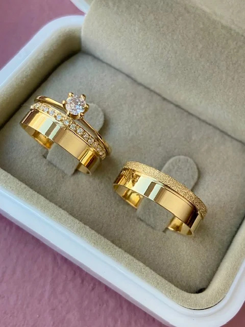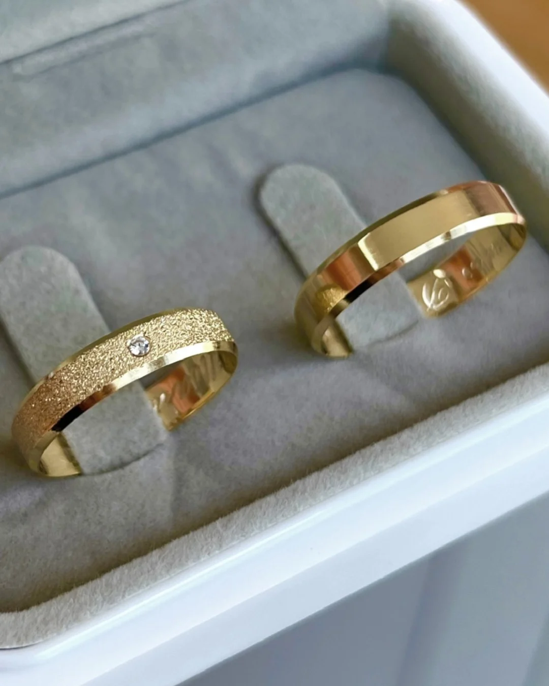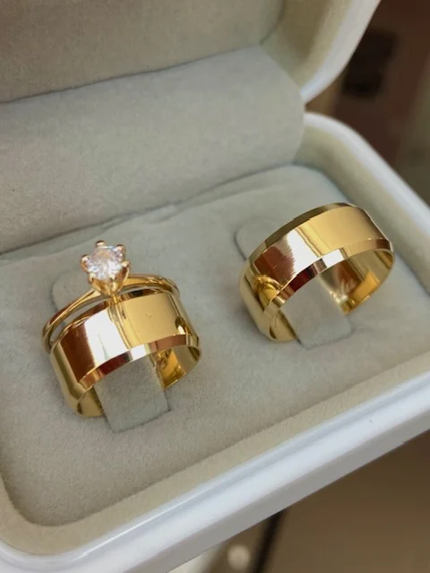 - Em casos onde a soma das medidas ultrapassarem 40 (exemplo, medida masculina 22 e feminina 20) recomendamos que seja acrescentado 0,5 gramas, 1 grama ou 2 gramas dependendo do modelo. Se for o seu caso, após a compra nossa equipe entrará em contato através do whatsapp ou e-mail cadastrados.